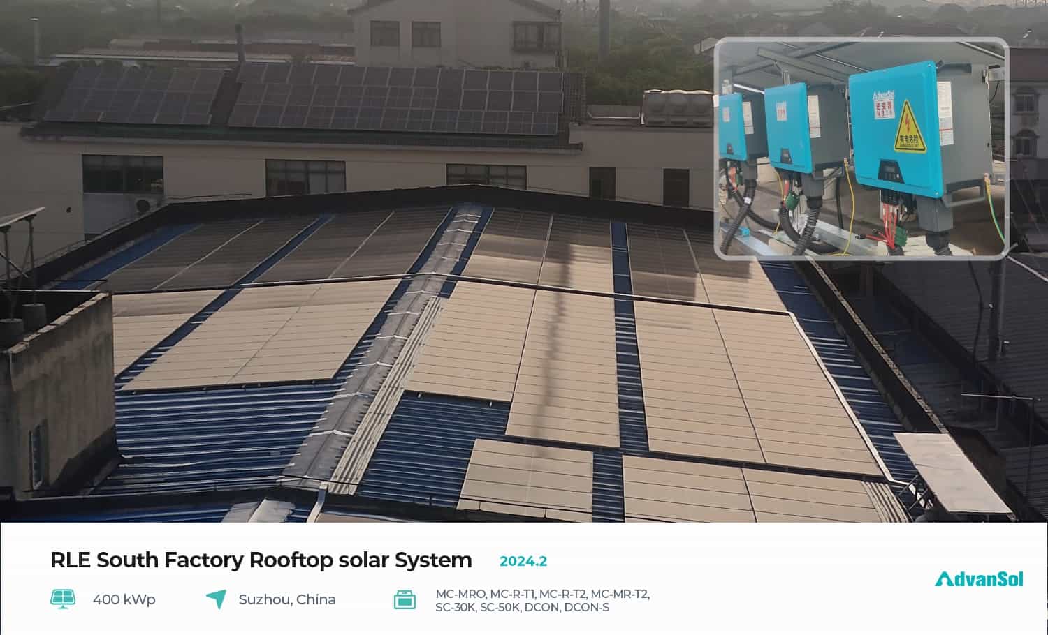 In February 2024, AdvanSol completed the delivery of the entire industrial and commercial rooftop power station project in Suzhou Wuzhong Industrial Park, demonstrating the product's applicability in different rooftop scenarios. This project fully adopts the AdvanSol V3.0 intelligent micro series inverter solution, providing a perfect solution for two application scenarios including color steel tiles and cement roofs. Its total installed capacity reaches 400kWp, achieving efficient utilization of clean energy.
