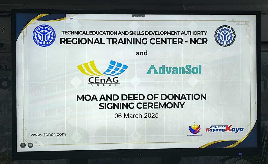 On March 5th, AdvanSol officially signed a cooperation agreement in Manila, Philippines to become the designated vocational training unit of TESDA. TESDA-related leaders and AdvanSol General Manager, Chen Jian, attended together. The training is mainly aimed at front-end staff of PV plants to maintain operation, the content includes photovoltaic DC rapid shutdown technology, related regulations standards, like AFCI&NED, etc., and specific operating steps. The class's purpose is to train a group of professional technicians for the local area, who know AFCI safety specifications and related operation experience in PV plants.
